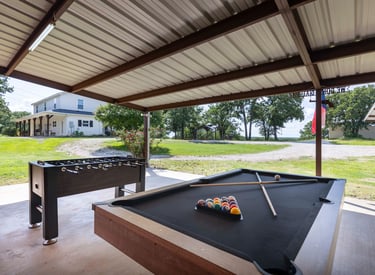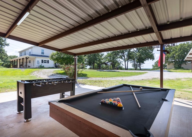 Enjoy a fun-filled experience in our outdoor recreation area - Pool table, foosball table, darts and a fire pit, all this exclusively available for guest at the Red Rodeo or those who book the entire property.